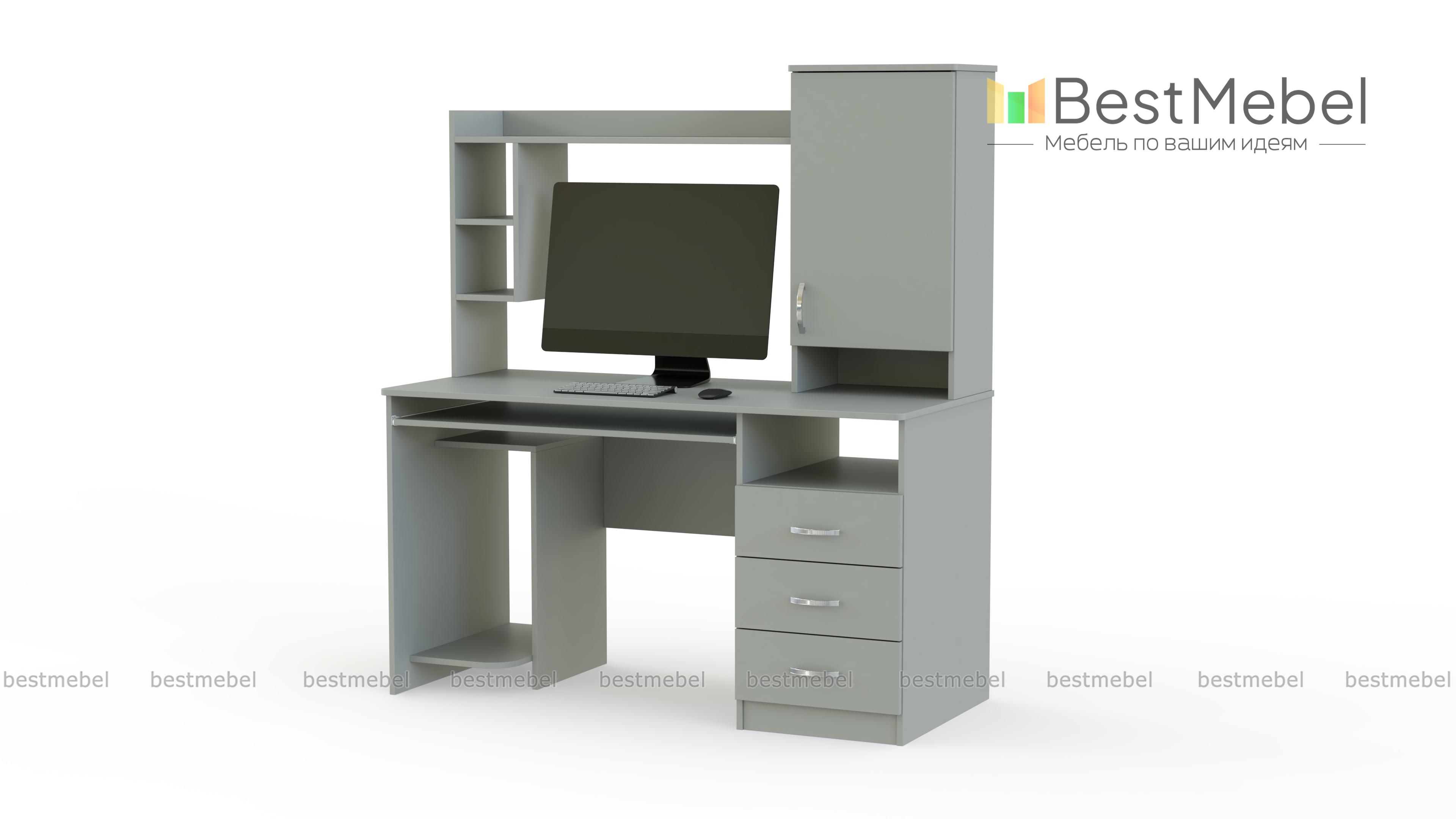 Очень удобная модель, особенно если нужен многофункциональный и современный стол. При небольших габаритах, в нем имеется не только все необходимое для удобного размещения компьютерной техники, но и достаточно места для хранения множества необходимых бумаг и предметов. Стол компьютерный ПСК-4, кроме полочек для мелочей, принтера, сканера, монитора и колонок имеет две большие тумбы: нижнюю с выдвижными ящичками и верхнюю с полками. Купить такую модель можно для дома, небольшой приемной или офиса.