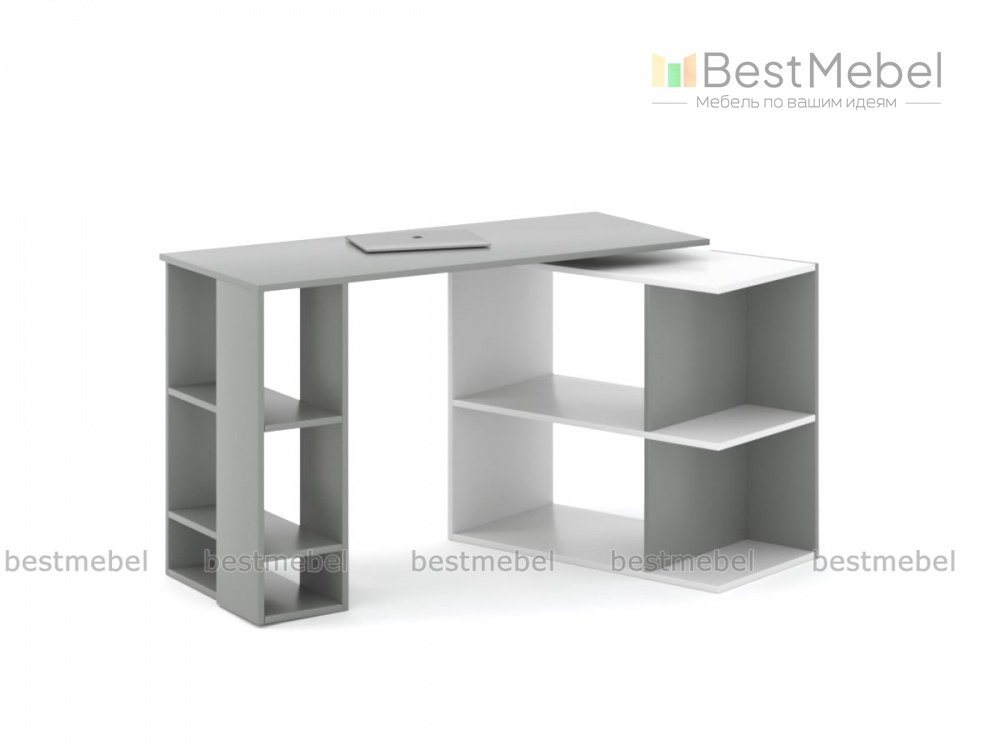 Стол компьютерный Рокки 14 BMS гармонично впишется в современный домашний и офисный интерьер, помогая рационально организовать пространство. Трансформер с поворотной столешницей вы сможете использовать как тумбу, прямой или угловой компьютерный стол. Модель в контрастном сочетании белого и серого оборудована просторными открытыми полками для удобного размещения книг, папок, оргтехники и предметов декора. Купить стол компьютерный Рокки 14 BMS приглашаем в наш интернет-магазин.