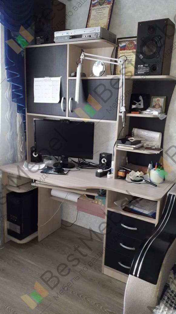 Заказ №1148765 Заказ 00000112856, изделие ЭСКИЗ №00000112856 Стол компьютерный СК-19 BMS (1400х1800х600), ссылка для отзыва https://www.bestmebelshop.ru/catalog/stoly-kompyuternye/stol-kompyuternyy-sk-19-bms/Недавно я приобрела компьютерный стол на сайте bestmebelshop, и хочу поделиться своим мнением о нём.Долго подбирала стол который мне бы хотелось в интернете и просто в магазинах мебели, и нашла наконец то, что мне хотелось у bestmebel. До этого заказывала у них шкаф, качество мне понравилось, поэтому решила заказать и стол тоже, тем более что после покупки шкафа были начислены бонусы и ими можно оплатить часть следующей покупки. У bestmebel есть замечательная услуга, что они делают изделия по необходимым тебе размерам и можно вносить изменения в стандартные модели столов , а так же выбрать материал и цвет, наполнение, фурнитуру изделия и др. Выбрала модель стола, которая наиболее мне подходила, на сайте, указала необходимые размеры и попросила добавить дополнительную стенку , сделать прямую столешницу . Изготовили очень быстро и доставили в срок! Пришло все целое, сколов и поврежденных деталей не было. Собирала самостоятельно.Сборка заняла немного времени, инструкции были понятными. Все детали подошли идеально, никаких проблем при сборке не возникло.Стол выглядит аккуратно и стильно. Материалы, из которых изготовлен стол, кажутся достаточно прочными и качественными. Поверхность гладкая, легко очищается от пыли и пятен. Стол имеет оптимальные размеры, достаточно просторный для размещения монитора, клавиатуры, мыши и других аксессуаров. Есть дополнительные полки и ящики для хранения документов и мелочей, что очень удобно. В целом, я очень доволен покупкой. Заказала ещё такой же рабочий стол ребёнку, только в другом цвете.Рекомендую bestmebelshop тем, кто ищет качественный и удобный рабочий стол для дома или офиса.