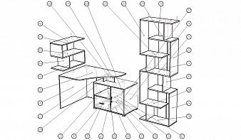 Угловой письменный стол для двоих с полками Веста 2 BMS