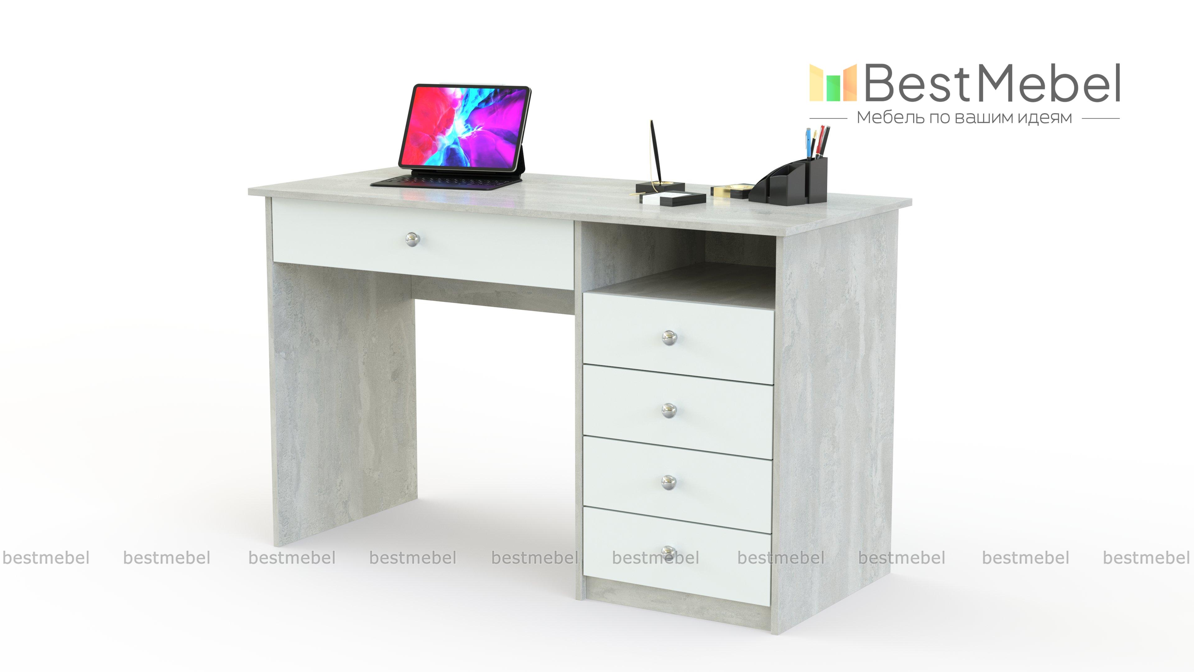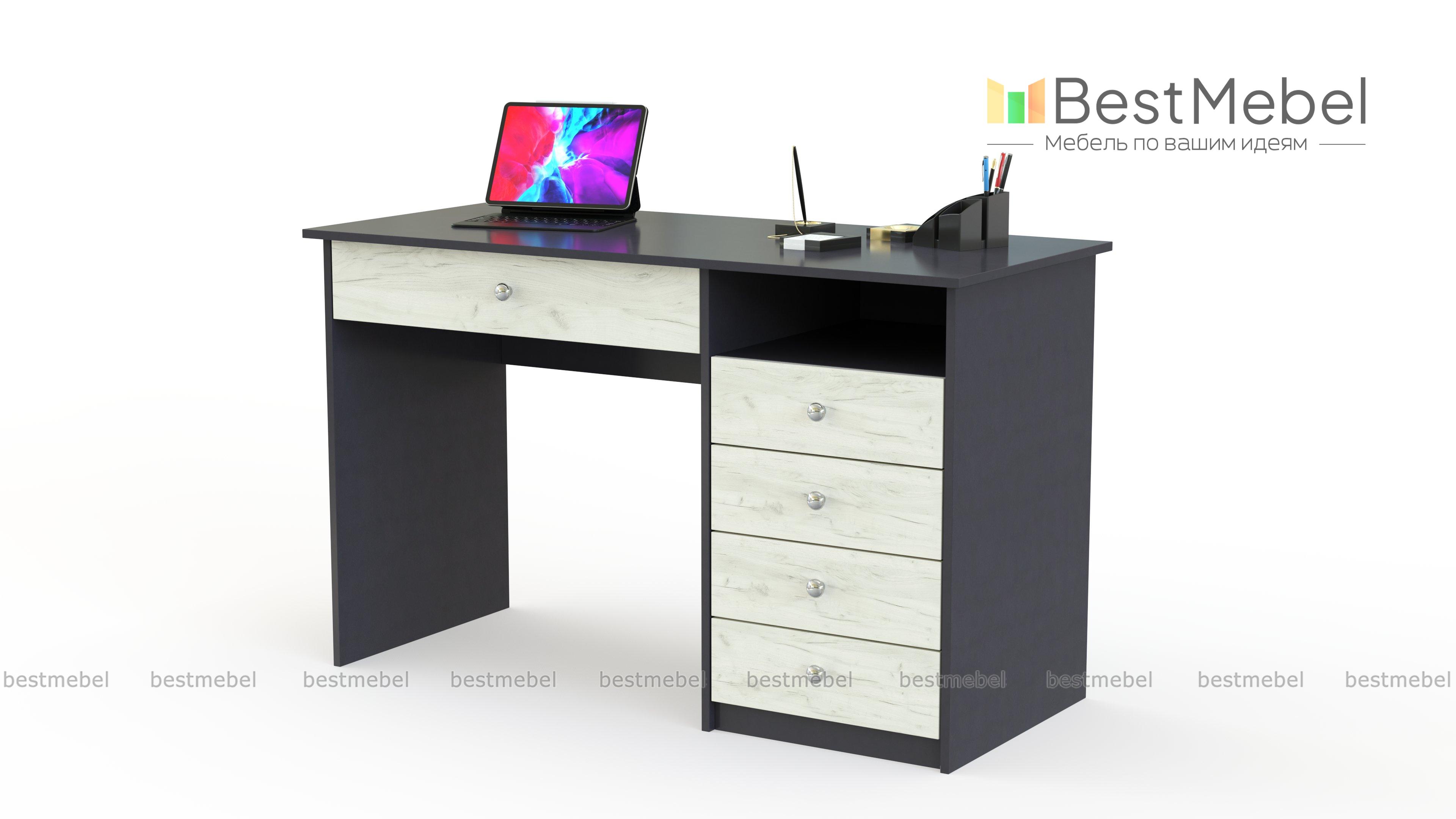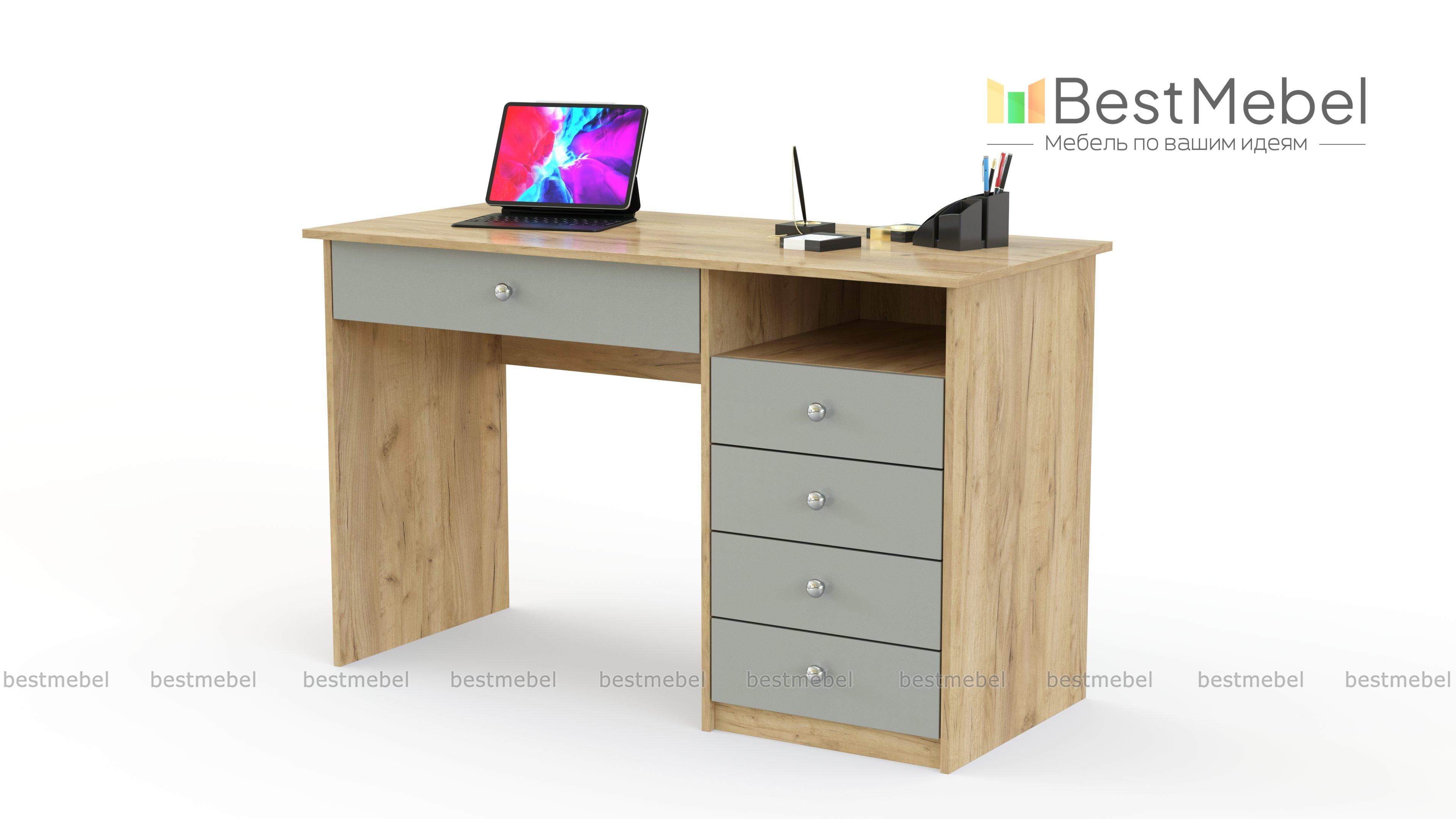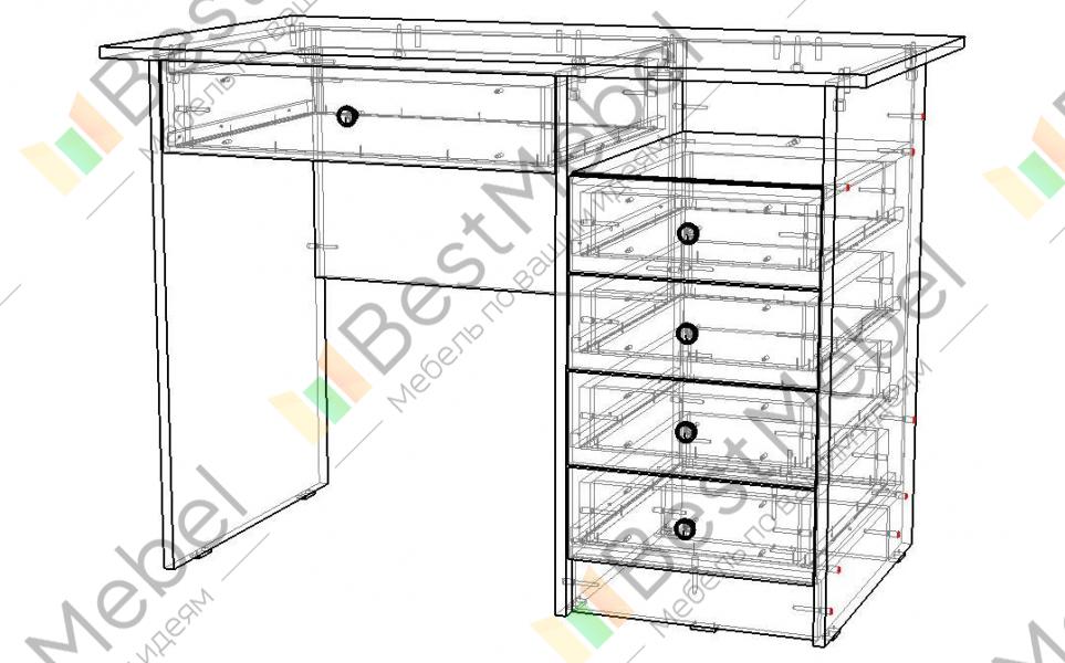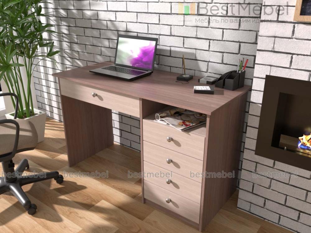 Письменный стол АСП4 BMS - это классика для комфортной работы или учебы. Пять выдвижных ящиков - один большой под столешницей и четыре боковых, позволяют разместить все канцелярские мелочи и личные вещи, а для бумаг предусмотрена удобная ниша справа. Прямая модель в древесных оттенках прекрасно подходит для домашнего и офисного интерьера, легко сочетаясь с другой мебелью. Купить письменный стол АСП4 BMS вы сможете в нашем интернет-магазине, по желанию изменив цвет и размеры.