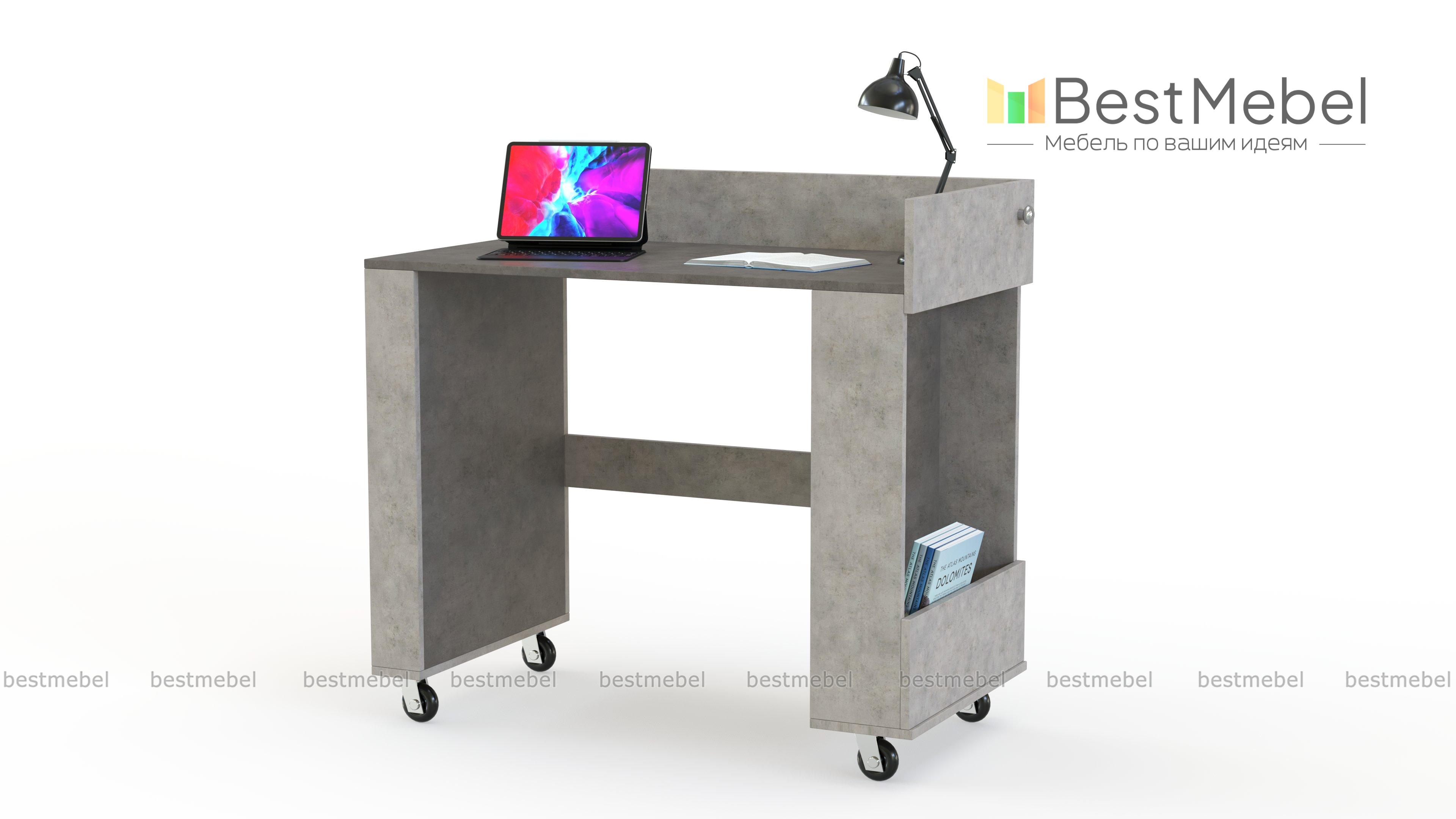 Письменный стол Мелисса 1 BMS станет практичным дизайнерским решением для малогабаритной комнаты. Передвижная модель отличается компактными размерами, легкостью перемещения и оборудована столешницей с высокими бортиками и торцевым отделением для хранения рабочих материалов. Сочетание белого и графитового органично впишется в современные интерьеры. Купить письменный стол Мелисса 1 BMS для письма или работы за ноутбуком вы сможете в нашем интернет-магазине.