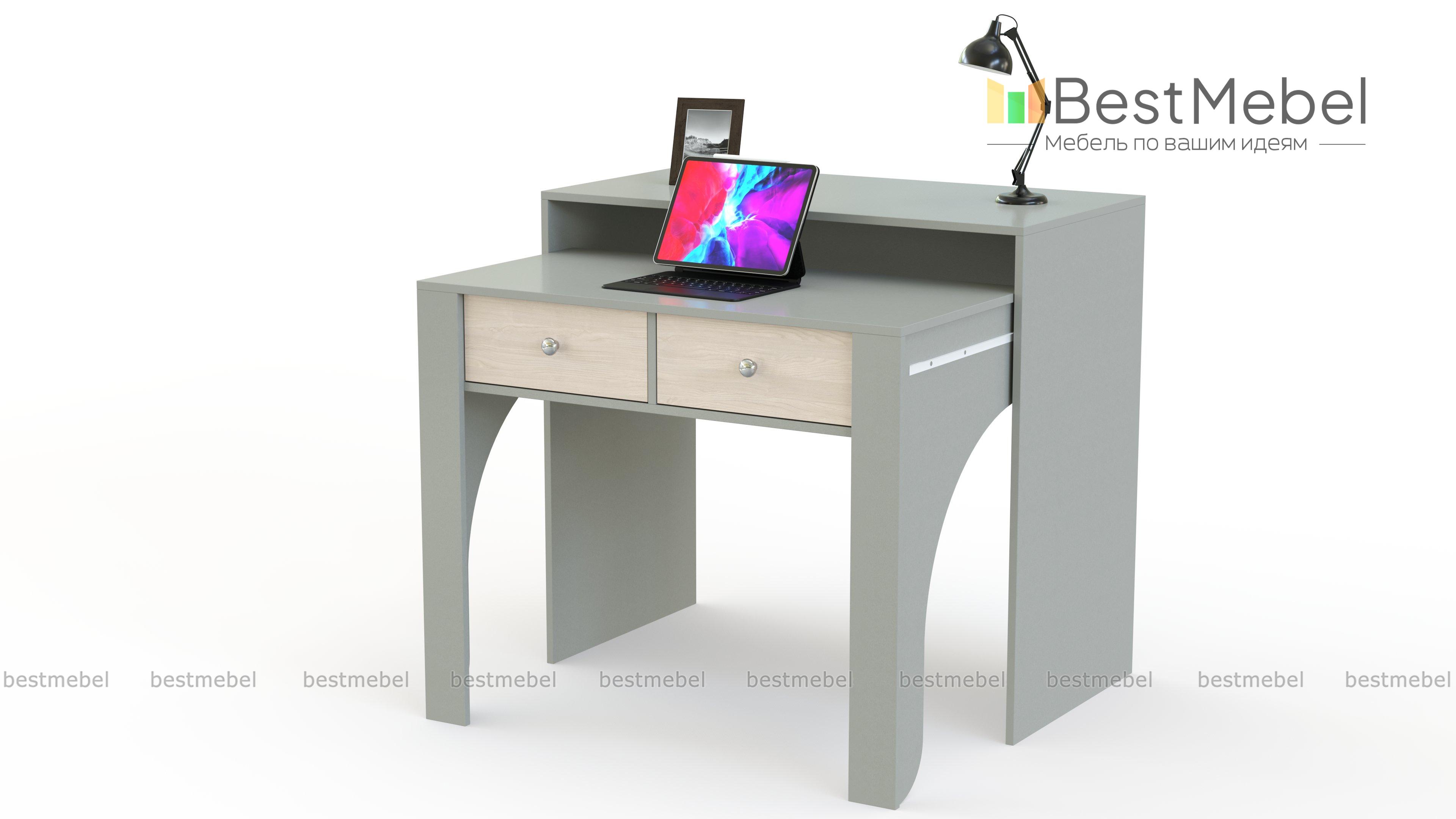 Невероятна оригинальная модель - письменный стол Веста ПС 40-10 BMS. Своеобразный стол-бюро позволяет работать за ним, сидя на стуле, либо стоя, что является большим удобством. Интересной деталью конструкции является консоль с двумя выдвижными ящичками, которая выдвигается из-под стола. Ее высота удобна для работы в сидячем положении. На столешнице хватает места для установки ноутбука, а в нишах можно хранить литературу, различные мелкие предметы. Верхняя часть стола становится в этом случае надстройкой, удобной для размещения документов, справочников, предметов декора. Изделие довольно компактно, и подойдет для самых различных помещений. Цветовое оформление выполнено модными оттенками венге и молочного дуба. Купить симпатичный письменный стол Веста ПС 40-10 BMS можно в нашем интернет магазине совсем недорого.