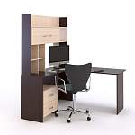Стол угловой Дамина-1 BMS удобен для работы за компьютером, разместит письменные принадлежности и оргтехнику, оптимизирует хранение канцелярских мелочей, книг и папок. Многофункциональная модель компактна за счет угловой формы и оборудована эргономично скругленной столешницей, тумбой с выдвижными ящиками и надстройкой с нишами и распашным шкафчиком. Отсутствие декоративных деталей и контрастная расцветка в древесных тонах делают композицию универсальной для молодежных комнат и рабочих кабинетов. Купить стол угловой Дамина-1 BMS вы всегда сможете в нашем интернет-магазине.