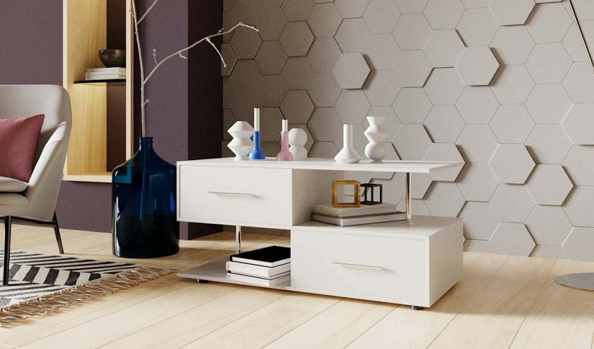 Журнальный стол Baxay BMS станет незаменимым элементом интерьера современной гостиной или офиса в стиле минимализм. Простая и оригинальная конструкция отличается визуальной легкостью и оборудована просторной столешницей, нишами с хромированными опорами и двумя выдвижными ящиками для мелочей. Долговечность и удобное пользование обеспечат модели качественные материалы и фурнитура. Купить журнальный стол Baxay BMS по демократичной цене приглашаем в наш интернет-магазин.