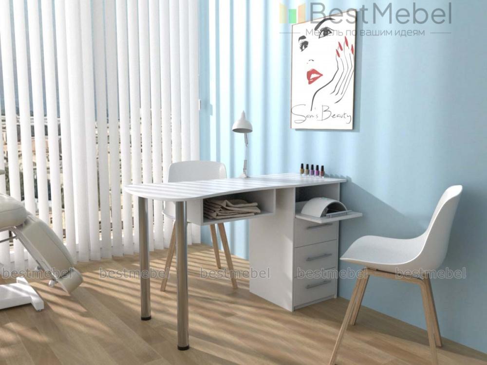 Маникюрный стол Полли BMS в сложенном виде представляет собой компактную тумбу и занимает минимум пространства, а при необходимости легко трансформируется в рабочее место. Модель оборудована тремя ящиками, нишей с выкатной полочкой и складной, скругленной по углам столешницей с открытой секцией. После демонтажа металлические опоры могут храниться в отсеке с распашной дверцей позади тумбы. Купить маникюрный стол Полли BMS и сэкономить пространство вам поможет наш интернет-магазин.