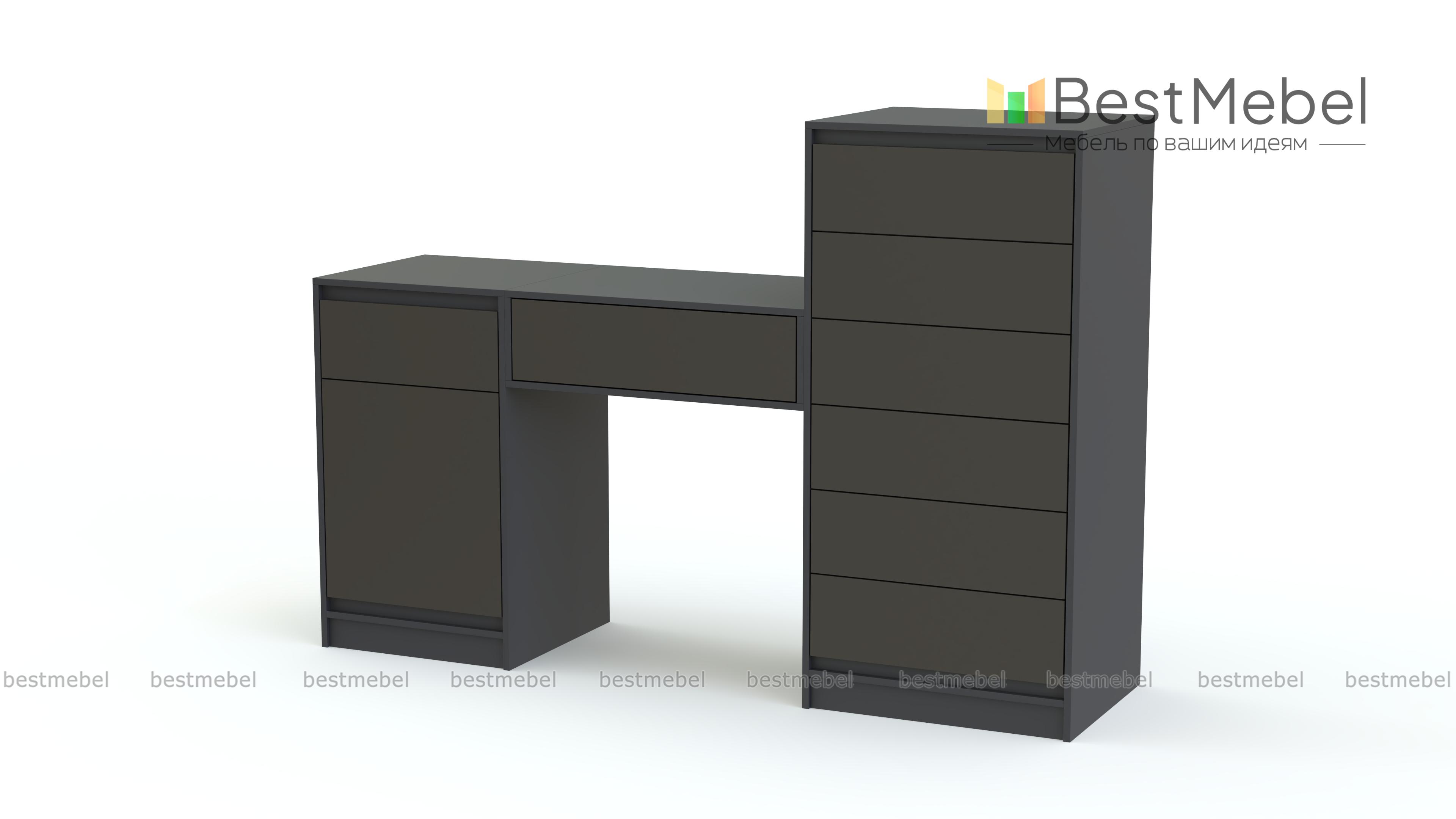 Туалетный стол Кэмел 14 BMS – практичное решение для элегантной спальни в современном классическом стиле. Модель, выполненная в белом цвете, отличается модным минималистичным дизайном и высокой функциональностью. Столик дополнен удобной системой хранения из двух тумб – низкой с ящиком и распашным отделением и высокой с шестью выдвижными ящиками для уходовых средств, аксессуаров и множества мелочей. Купить туалетный стол Кэмел 14 BMS по выгодной цене вы сможете в нашем интернет-магазине.