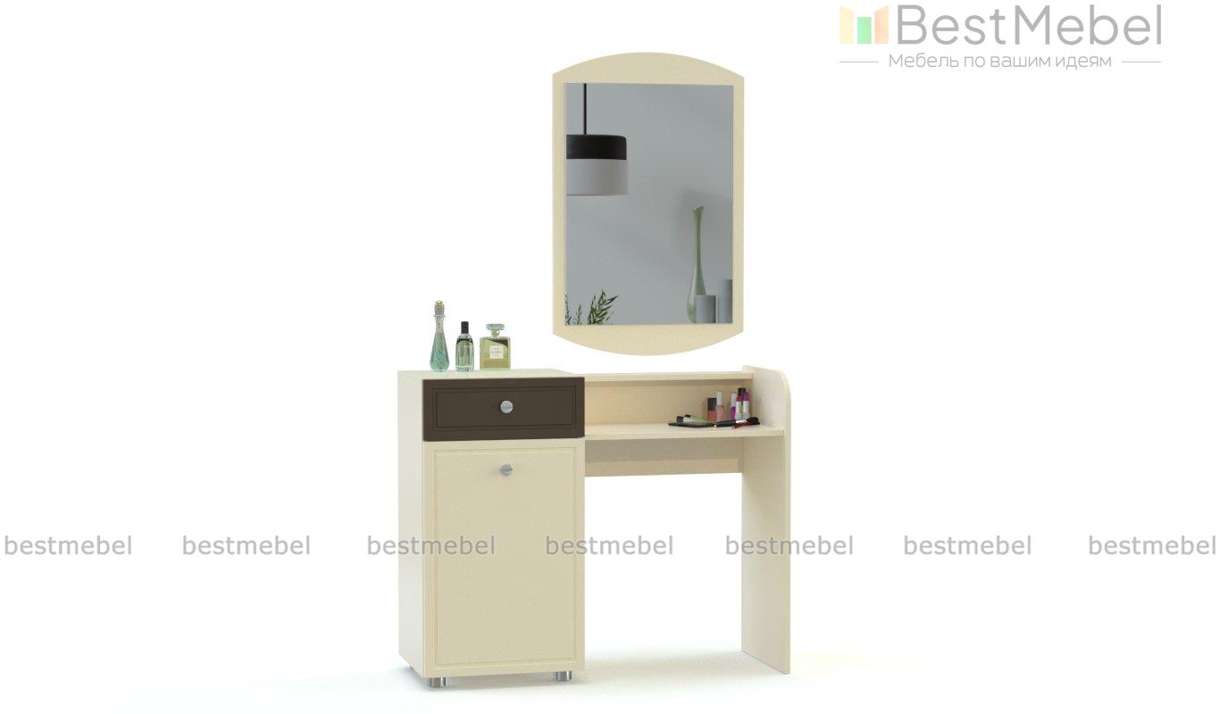 Туалетный столик Фреско 4 BMS станет главным украшением вашей спальной комнаты или гостиной за счет оригинального дизайнерского решения. Контрастные фрезерованные фасады придадут пространству выразительности, а прямоугольное зеркало будет служить дополнительным источником света и незаменимым помощником при нанесении макияжа. Модель оборудована выдвижным ящиком и вместительным распашным отделением, а на столешнице можно разместить важные мелочи. Купить туалетный столик Фреско 4 BMS по оптимальной цене вы можете в нашем интернет-магазине.