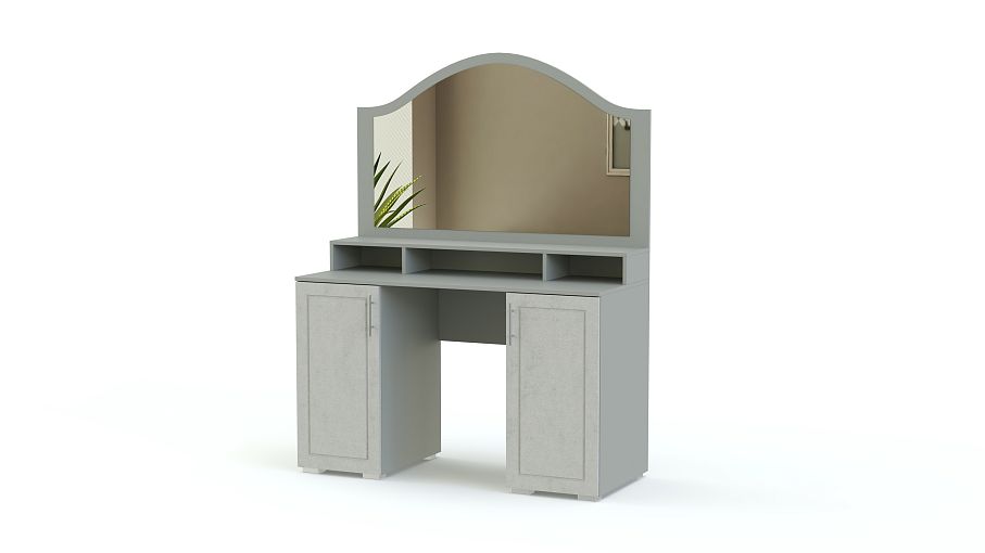 Туалетный столик Ханна BMS станет частью по-домашнему уютного спального интерьера, объединившего классику и современные тенденции. Изящный столик оборудован широкой столешницей, дополненной двумя распашными тумбами и надстройкой с открытыми полочками для мелочей, и панелью с зеркалом. Выполненная в серых тонах и декорированная по фасадам нежных оттенков фрезеровкой и ручками, модель смотрится легкой и украсит обстановку. Купить туалетный столик Ханна BMS, подобрав цветовое решение, приглашаем в наш интернет-магазин.