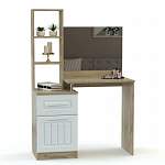 Туалетный столик Оливия МДФ BMS станет частью модульной спальни или самостоятельным предметом интерьера в стиле прованс, кантри или классическом. Миниатюрный столик с зеркалом опирается на вместительную тумбу с надстройкой и позволит разместить под рукой уходовые средства, предметы декора и прочие мелочи. Корпус в светлых древесных тонах дополнен белым фасадом, украшенным характерной вертикальной фрезеровкой. Купить туалетный столик Оливия МДФ BMS приглашаем в наш интернет-магазин.