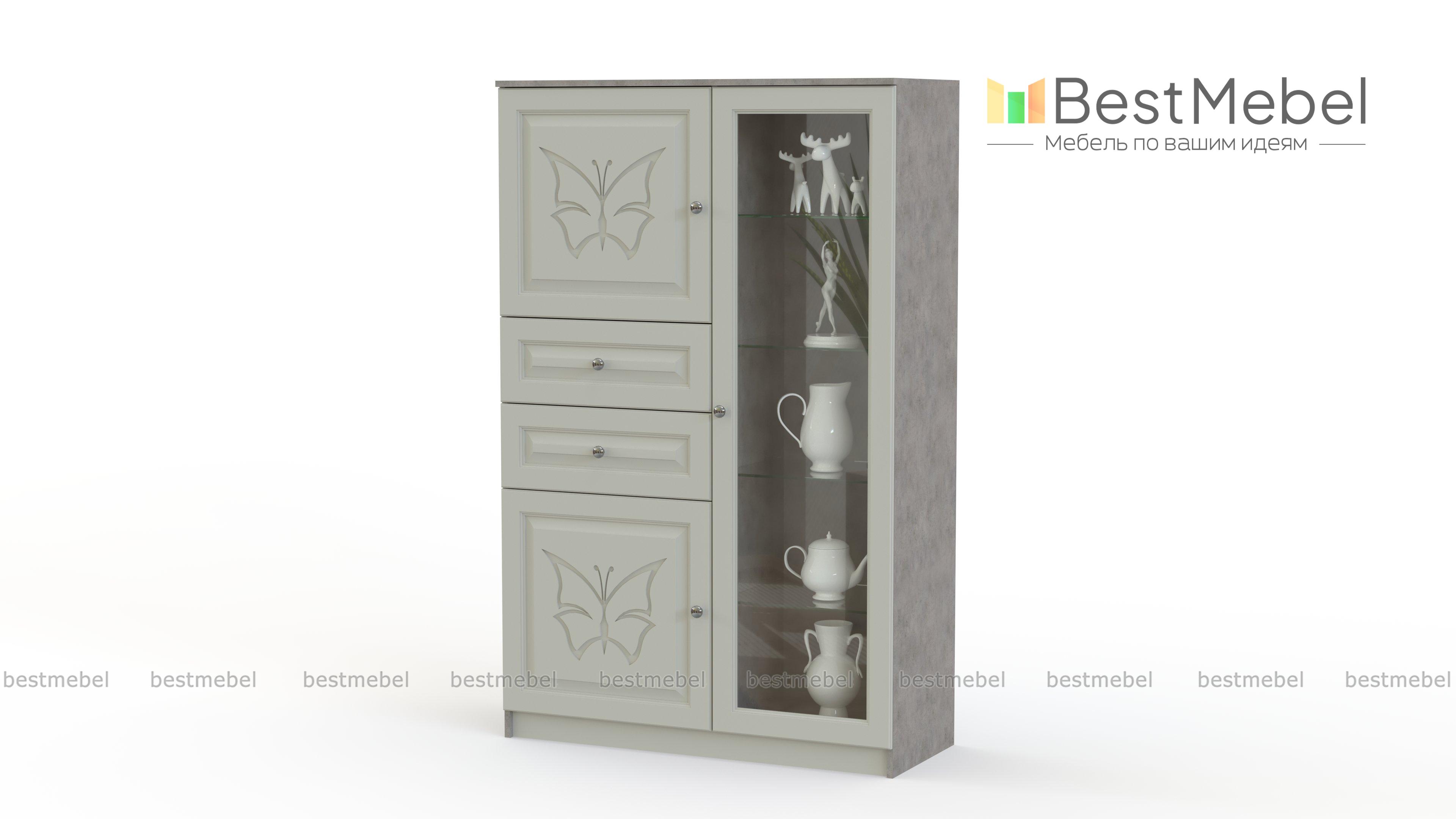 Тумба Фимо 4 BMS украсит интерьер гостиной или столовой и поможет разместить как бытовые вещи, так и красивую посуду. Шкафчик классического дизайна привлекает цветовым решением в белом цвете и декорирован изящной фрезеровкой. В левой части модели располагаются закрытые отделения с полками и два выдвижных ящика, а правая представляет собой изящную витрину со стеклополками и подсветкой. Купить тумбу Фимо 4 BMS выгодно приглашаем к нам в интернет-магазин.