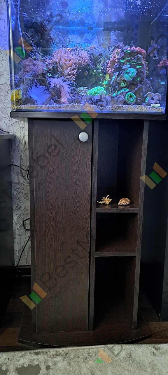 Я очень довольна этой моделью тумбы под аквариум. Есть достаточно вместительное место для хранения необходимых предметов для ухода за аквариумов и корма для рыб. Тумбу изготовили по необходимым для нас размерам, очень качественно и быстро. В дизайне интерьера смотрится стильно и современно. К покупке советую.