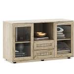 Тумба под ТВ Дуэт 1 BMS – это удобное место хранения мелочей, стильная витрина для книг, посуды или декора и подставка для телевизора. Многофункциональная тумба в трендовом оттенке под массив дерева украсит гостиную современного дома. Просторная ниша и два выдвижных ящика с рамочными фасадами дополнены расположенными по бокам застекленными распашными отделениями с полками. Купить тумбу под ТВ Дуэт 1 BMS вы сможете в нашем интернет-магазине, по желанию изменив цвет и размеры.
