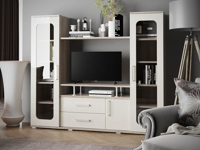 Тумба под ТВ Ф-9 BMS – многофункциональная модель, которая станет полноценной заменой стенке в малогабаритной гостиной или детской. Тумба оборудована нишей под ТВ, открытыми полками, выдвижными ящиками, распашным отделением и симметричными боковыми пеналами. Яркие глянцевые фасады и стеклянные вставки на дверцах добавят домашней атмосфере красок и позитива. Купить тумбу под ТВ Ф-9 BMS, подобрав все необходимые параметры, вы сможете в нашем интернет-магазине.