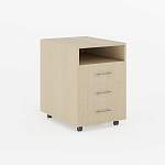 Хорошая, бюджетная тумба: три выдвижных ящика и открытая полка. Наличие колёс значительно облегчает уборку помещения.