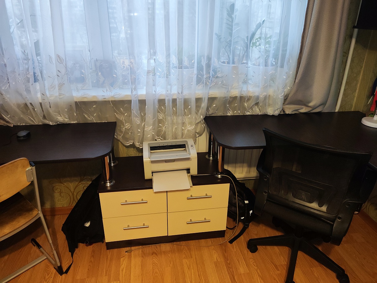 Заказ 00000252127, Угловой письменный стол для двоих Канзас 34 BMSЗаказывали этот стол для детской комнаты. Искали именно угловую модель, чтобы у каждого ребёнка было свое рабочее место. По ширине стол идеально вписался в размеры комнаты.Плюсы:Длина столешницы более 1,7 метра . Это очень удобно. Дети не мешают друг другу, свободно размещают учебники, канцелярию, у каждого теперь своя полка и по два отдельных ящика. Конфликтов из-за места теперь нет + в комнате стало легко поддерживать порядок.Качество сборки и материалы. Стол приехал в надежной упаковке, все детали были целы. Собирали по инструкции, процесс стандартный. Фасад тумб и столешница выглядят аккуратно, заявленного цвета «венге/дуб сонома».Угловая форма позволяет каждому сидеть в удобном положении.Отличное соотношение цены и качества.Недостаток: качество кромки на столешнице. Этот недостаток легко устраняется покупкой кромки на маркетплейсе за копейки. Запах ДСП держится какое-то время, но со временем проходит.Итог: Стол «Канзас-34» — нам идеально подошёл. Комфортно, уютно, удобно и со вкусом. Рекомендую.