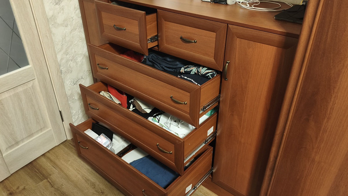 Комод Иван 2.4,2 ящика BMS. Заказ № 00000295853. Размер нестандартный 1600х1200х500.Удобный интерфейс для заказа, большой выбор фурнитуры, материалов и цветов.Запросил эскиз комода, для понимания глубины ящиков, направили в тот же день, что очень помогло.Высокое качество материалов, не жалею, что выбрал достаточно дорогие направляющие для выдвижных ящиков- работают легко, без шума и перекосов, то же по петлям дверей.Привезли вовремя, сборщик работал достаточно долго, но качественно.По результатам эксплуатации в течение 2-х месяцев недостатков нет.Покупкой и магазином очень доволен.Рекомендую!