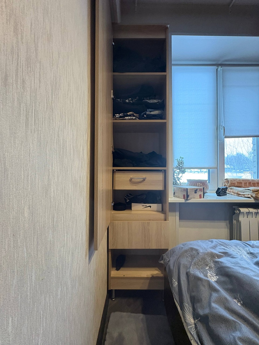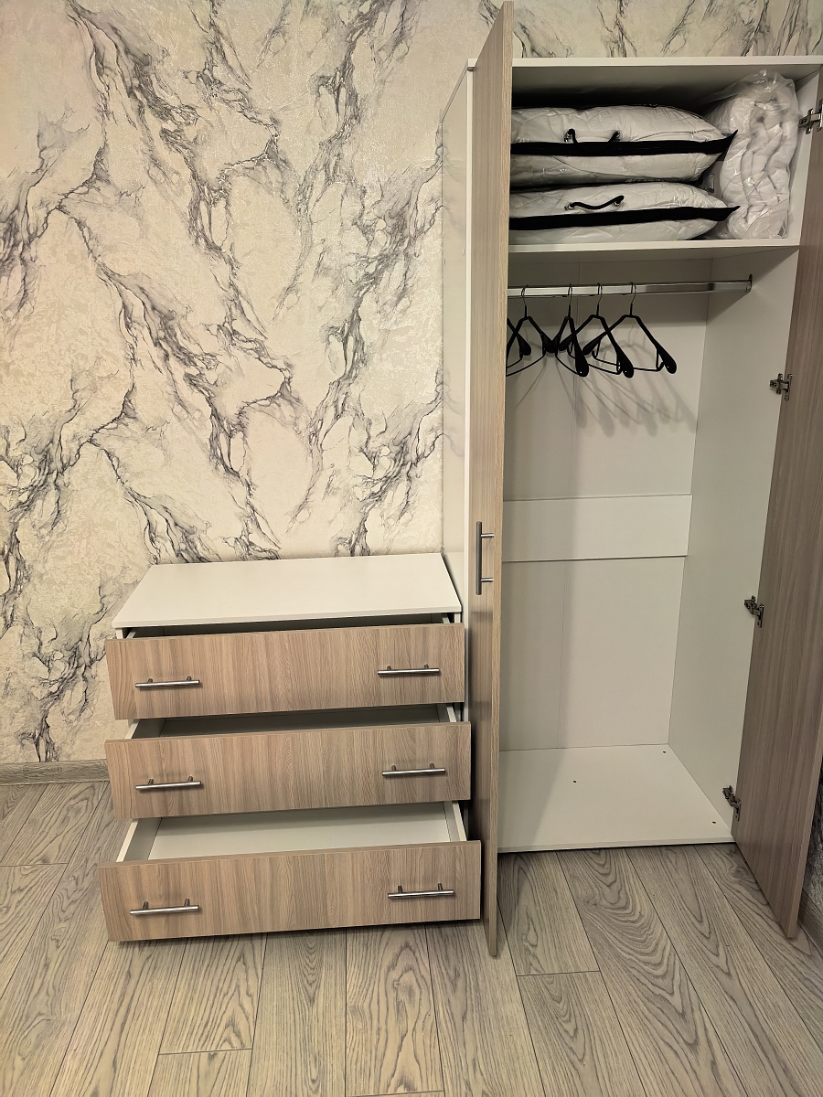 Хотел шкаф, но места мало. Нашёл на Ozon. Слегка выпивший, снял размеры. Шкаф пришёл — на место встаёт. А то, что не всё открывается, — это проблемы шкафа. Пришлось самому чуть‑чуть доработать, но это мой косяк. Шкафом доволен. Руководство по сборке почему‑то не открывается на компьютере; с телефона читать не очень удобно, но это не критично.