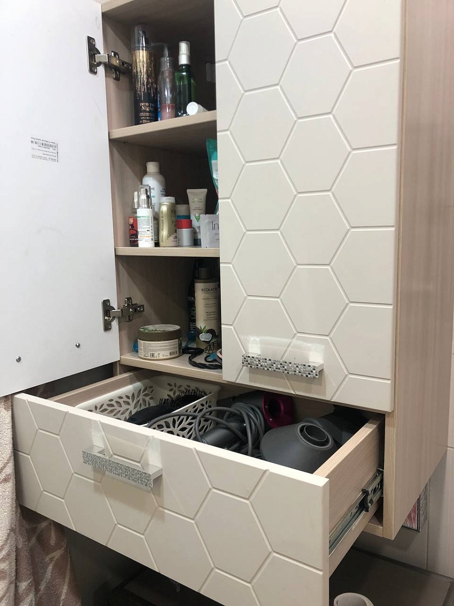 Хороший шкаф! Очень удобно, что можно выбирать наполнение (полки, ящики) под себя. Цвет красивый, давно такой искала.