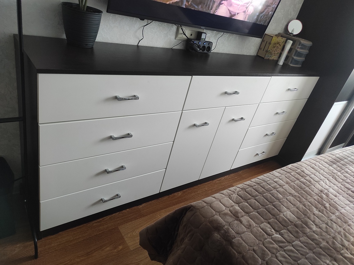 Отличный комод. Классно смотрится, для небольших вещей то самое.. Только ручки другие купили в магазине.