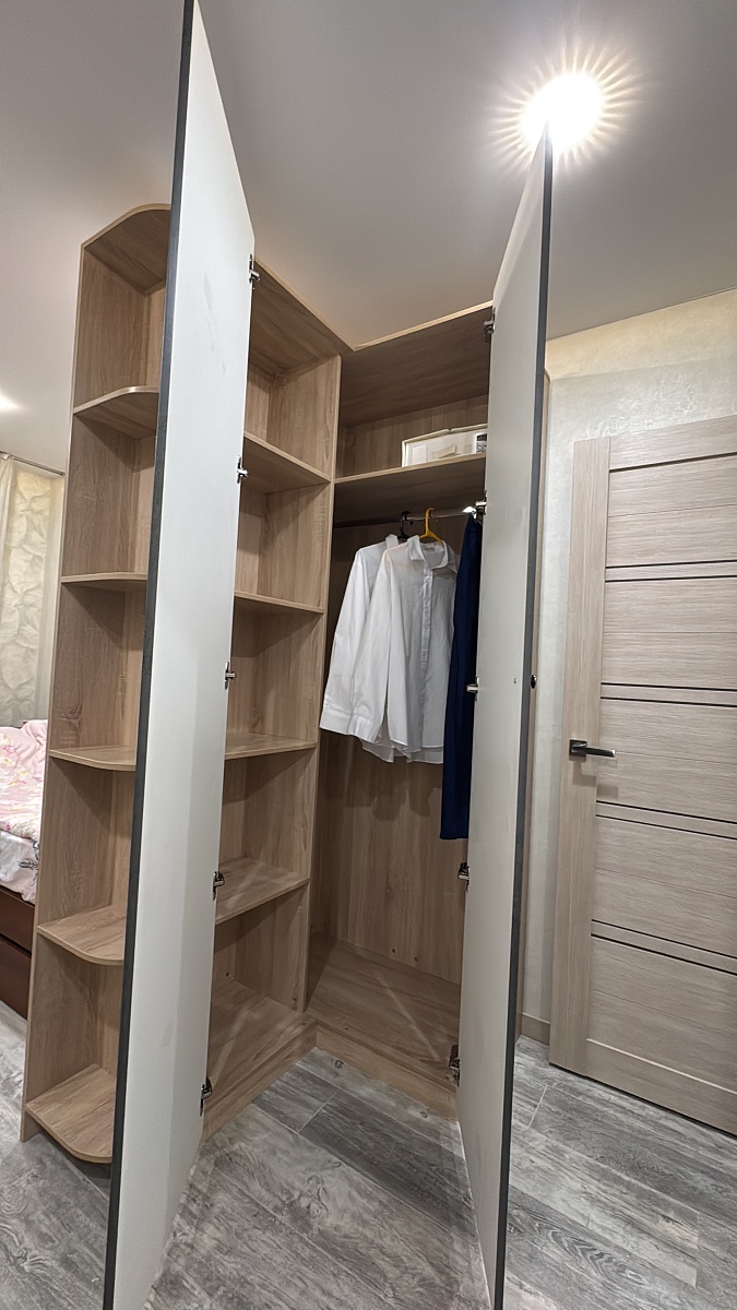 Долго искали шкаф подходящего размера, остановились на угловом.  Несмотря на компактные размеры- вместительный, качественные материалы и фурнитура. Удобный в использовании. Экономит пространство- для небольших комнат, можно подогнать под свои размеры. Доставка вовремя. В назначенный день приехали два сборщика с инструментами, собрали быстро . Сборкой осталась довольна, спасибо! Получился отличный шкаф. Покупкой довольны.