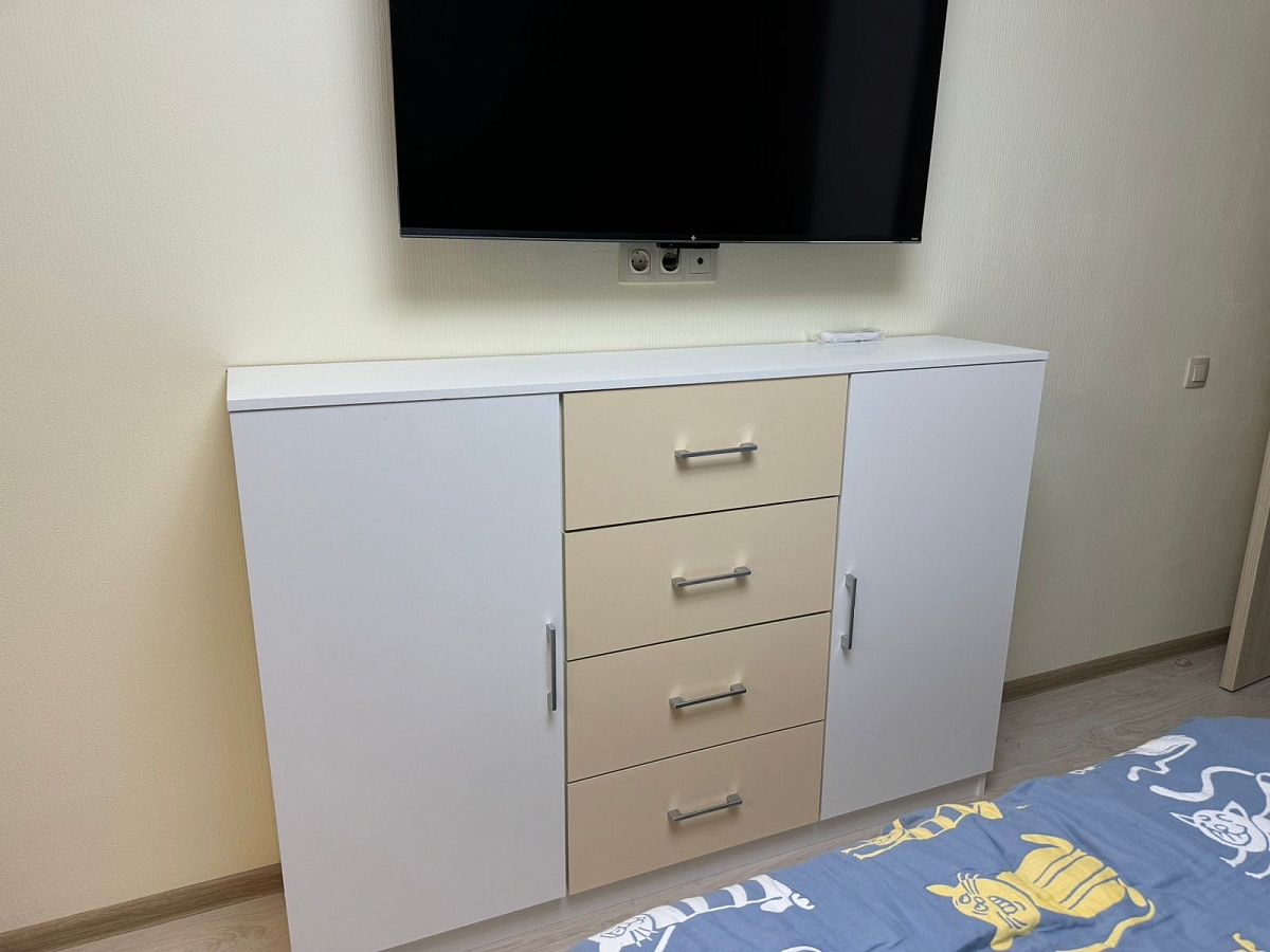 Давно искал тумбу похожего дизайна в нужной мне цветовой гамме и размерах, и в интернете ничего адекватного было не найти. Снова на помощь пришла BestMebel, выполнив мои пожелания и приняла дополнение заказа по телефону.У конструкции тумбочки есть и минус. С прикрученной как ее тут назвали "Задняя панель1" невозможно вытащить/засунуть ящик, так как задняя часть ящика не может зайти на направляющие под углом, мешают полсантиметра высоты этой детали. Для этого пришлось уже после сборки разбирать перед ящика, откручивать крышку, засовывать ящик, прикручивать обратно крышку и уже потом снова собирать перед ящика.