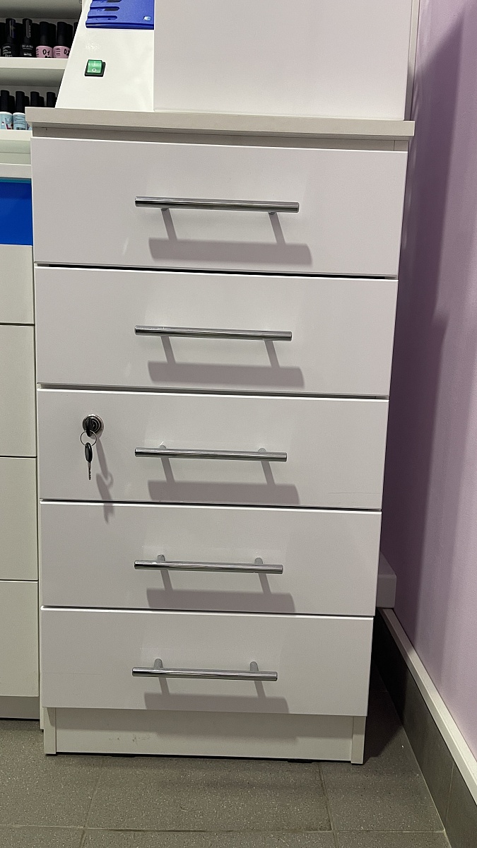 Добрый день, мой заказ 00000235865, изделие ЭСКИЗ №00000235865 Тумба Маникюрная с замком и ящиками BMS (450х840х480). Сказать, что я в восторге- ничего не сказать! Очень удобная и качественная тумба! Массивная, не обычная деревяшка, устойчивый! Переживала, что рейлинги будут «проседать» от тяжести, но нет! Они мощные!! Замочек хороший, легко закрывает и открывает- ничего не заедает! Доставка быстрая! Спасибо огромное!