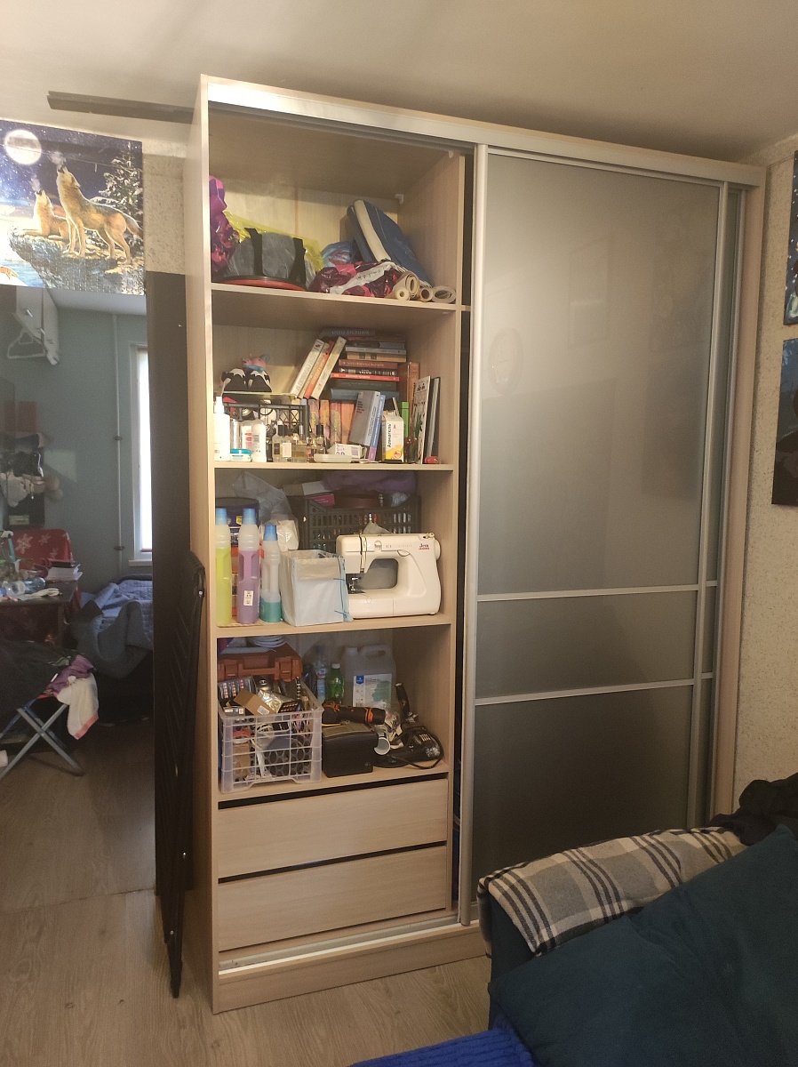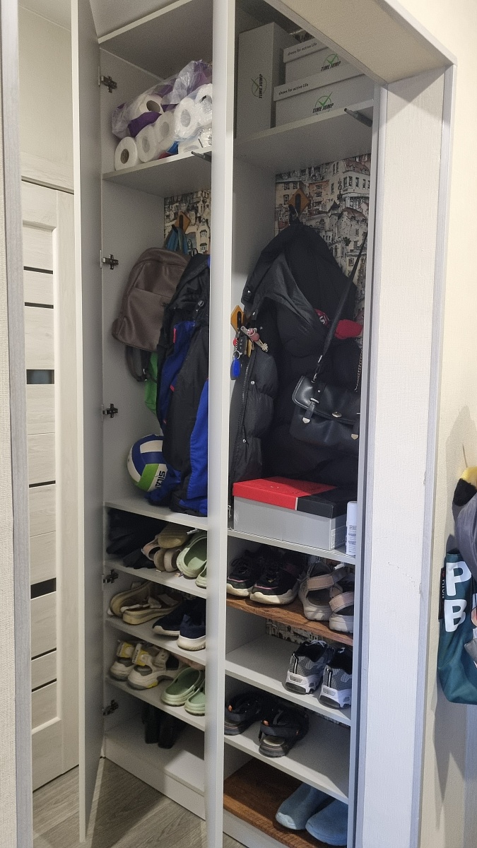 Заказ 00000989902. Шкаф "Остин Нео 16 BMS" мы брали в спальню, чтобы навести порядок с одеждой. Первое, что понравилось – возможность выбрать цвет. Взяли серый – смотрится очень стильно и современно, именно такой нейтральный, но не скучный оттенок, который мы искали. Черные ручки стали отличным контрастным акцентом, завершили вид. Сам дизайн действительно минималистичный и аккуратный, не перегружает пространство.Функционально шкаф оказался удобным. Три двери – хороший размах. Отделение для вешалок вместило все платья и костюмы, полки отлично подошли для футболок, свитеров и постельного белья. Распашная антресоль вверху – спасение для чемоданов и сезонных вещей, которые не нужны каждый день. Зеркало на центральной дверце – просто бомба! Очень удобно видеть себя в полный рост перед выходом, не бегая по квартире. И правда создает ощущение, что комната чуть больше.Но сборка... Сборка была испытанием.Деталей много, и самое сложное – установить вертикальные стенки (боковины и центральную перегородку) в одиночку. Это просто нереально. Они большие, тяжелые, их нужно держать строго вертикально и одновременно прикручивать. Без помощника тут никак, мы еле справились вдвоем. Еще один момент – петли. Их несколько типов (для обычных дверей и для зеркальной), и в инструкции не сразу понятно, какие куда. Пришлось искать видео сборки в интернете, чтобы разобраться – без него наверняка перепутали бы. Будьте готовы к этому этапу.Если вам нужен компактный, но вместительный шкаф с современным дизайном и полным зеркалом, и вы готовы к сборке (обязательно с помощником и, возможно, с обучающим видео под рукой), то "Остин Нео" – отличный вариант. Смотрится дороже своей цены, и теперь вся одежда наконец-то прибрана!