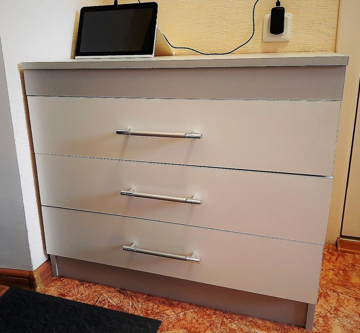В ПРИХОЖУЮ НУЖЕН БЫЛ КОМОД, ВПИСЫВАЮЩИЙСЯ МЕЖДУ ДВУМЯ ДВЕРЬМИ И РОЗЕТКОЙ. ПОЛУЧЕННОЕ ИЗДЕЛИЕ УСТРОИЛО ПО ВСЕМ ПАРАМЕТРАМ. СБОРКА ТРУДНОСТЕЙ НЕ ВЫЗВАЛА. ЯВЛЯЕТСЯ ОДНОВРЕМЕННО ТУМБОЧКОЙ И БАНКЕТКОЙ. ДЛИННЫЕ ЯЩИКИ (75 СМ) ИДЕАЛЬНЫ ДЛЯ ХРАНЕНИЯ ВСЕВОЗМОЖНЫХ ПРИНАДЛЕЖНОСТЕЙ, РУЛОНОВ, ИНСТРУМЕНТОВ БОЛЬШИХ РАЗМЕРОВ. ДИЗАЙН ТОЖЕ УСТРАИВАЕТ. ПОЛЁТ НОРМАЛЬНЫЙ. НЕДОСТАТКОВ НЕ ВЫЯВЛЕНО.