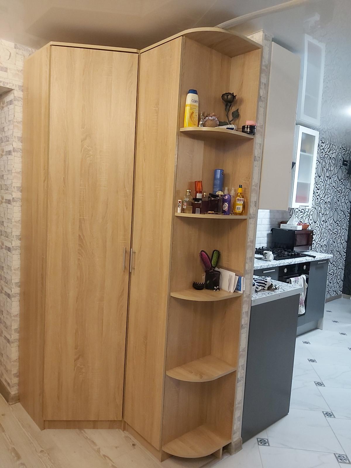 Покупали буфет Романс по индивидуальным размерам в составе сборного гарнитура для небольшой кухни на даче. Заказали в цвете Орех Экко, с фасадами Береза 1901. В сборный гарнитур также вошли: Шкаф нижний Гарда угловой 850 BMS, Шкаф нижний Гарда мойка 1 дверь BMS, шкаф нижний торцевой радиусный Ирен BMS, Шкаф верхний высокий Гарда горизонтальный стекло BMS. Буфет оказался очень милым, с боковыми стенками с красивыми изгибами. При том, что мы его заказывали минимальной глубины, (нижняя часть буфета всего 40 см), в него поместилось вся посуда. Мы очень довольны приобретением!