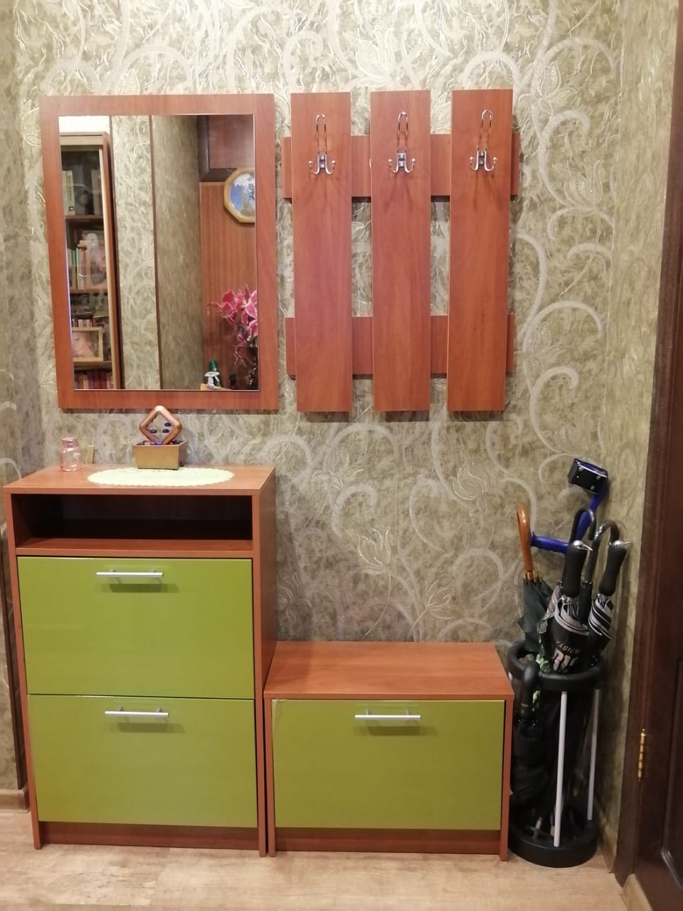 Заказ 325751. Прекрасная прихожая для небольшого коридора. То, что нужно. Заказали в цвете Яблоня Локарно (корпус), Олива Глянец 3090. - очень красивое сочетание цветов, в жизни смотрится намного интересней, чем на фото. Покупкой довольны. Всем рекомендуем