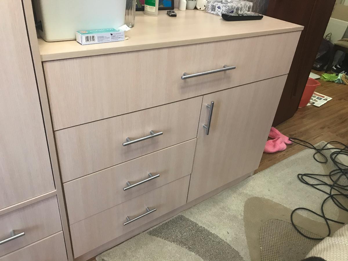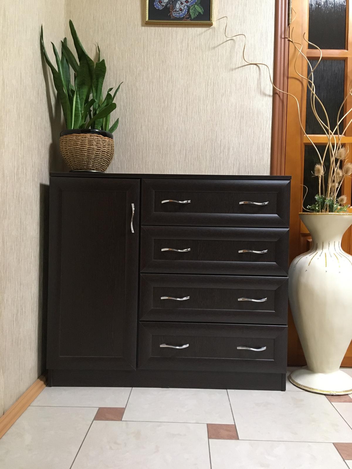 На сайте « БестМебельШоп» заказывала комод Иван МДФ 1,4 BMS (Заказ 00000431169) по нужным мне размерам (1000х900х300). Чем мне нравится этот сайт- то, что можно указать свои размеры, выбрать свои цвета, аксессуары. Мне нужен был комод именно с глубиной 30 см. Очень долго искала готовые комоды с такими размерами и только на «БестМебельШоп» смогла найти то, что мне надо и откорректировать. Вписался комод в интерьер идеально. Большое дверце с доводчиком, а выдвижные ящики обычные, без доводчиков. Открываются нормально, немного с шумом. Я очень довольна покупкой.