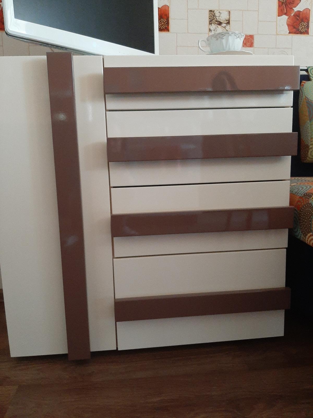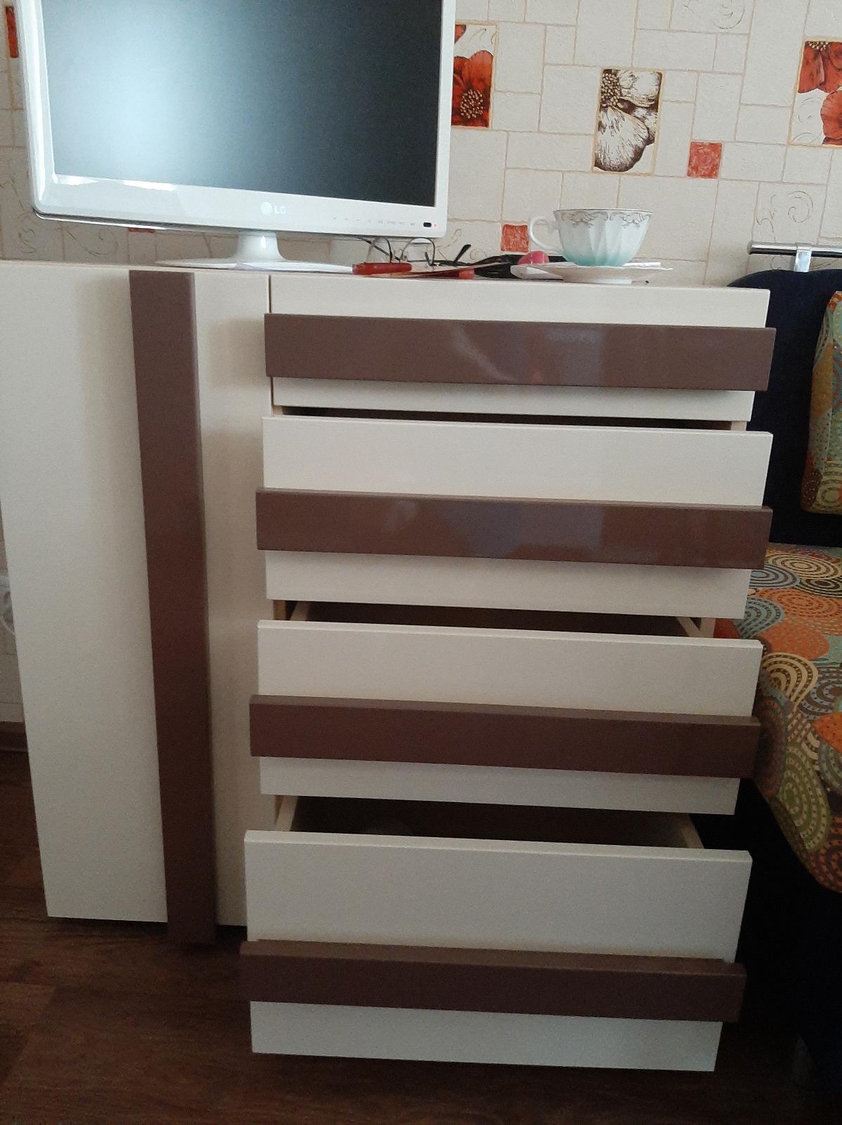№ заказа 367260 Комод 3-х дверный 2 ящика Corano BMS (1600х1100х420) 367260 Комод 3-х Долго с женой выбирали комод, что бы радовал глаз и совпадал с нашим кухонным гарнитуром, в интернете увидели, понравился. Вначале было недоверие к заказу из интернета, решили рискнуть и не пожалели. Оформили заказ быстро с сайта. Оперативно с нами связались, уточнили все пункты заказа, подробно разъяснили все вопросы. Оказалось что данная модель изготавливается впервые, эксклюзив так сказать для нас. Через неделю перезвонили, еще раз уточнили адрес доставки и отправили курьерской службой. Все получил быстро. При сборке вопросов особых не возникло, если есть голова и руки, то по приложенной инструкции все собирается, ни каких допилов и доделок не требуется, всех шурупов/крепежей хватило с избытком. В поставке не доложили микролифт для дверцы, отдел по претензиям все выслушали, извинились и за их счет выслали еще раз курьером. Есть пожелание, стекло делать матовым или придумать как закрыть фальш панелью петли на дверце со стеклом, так как их видно и немного портит вид (на фото видно). Так что мы остались очень довольны, спасибо за проделанную работу и чуткое отношение.
