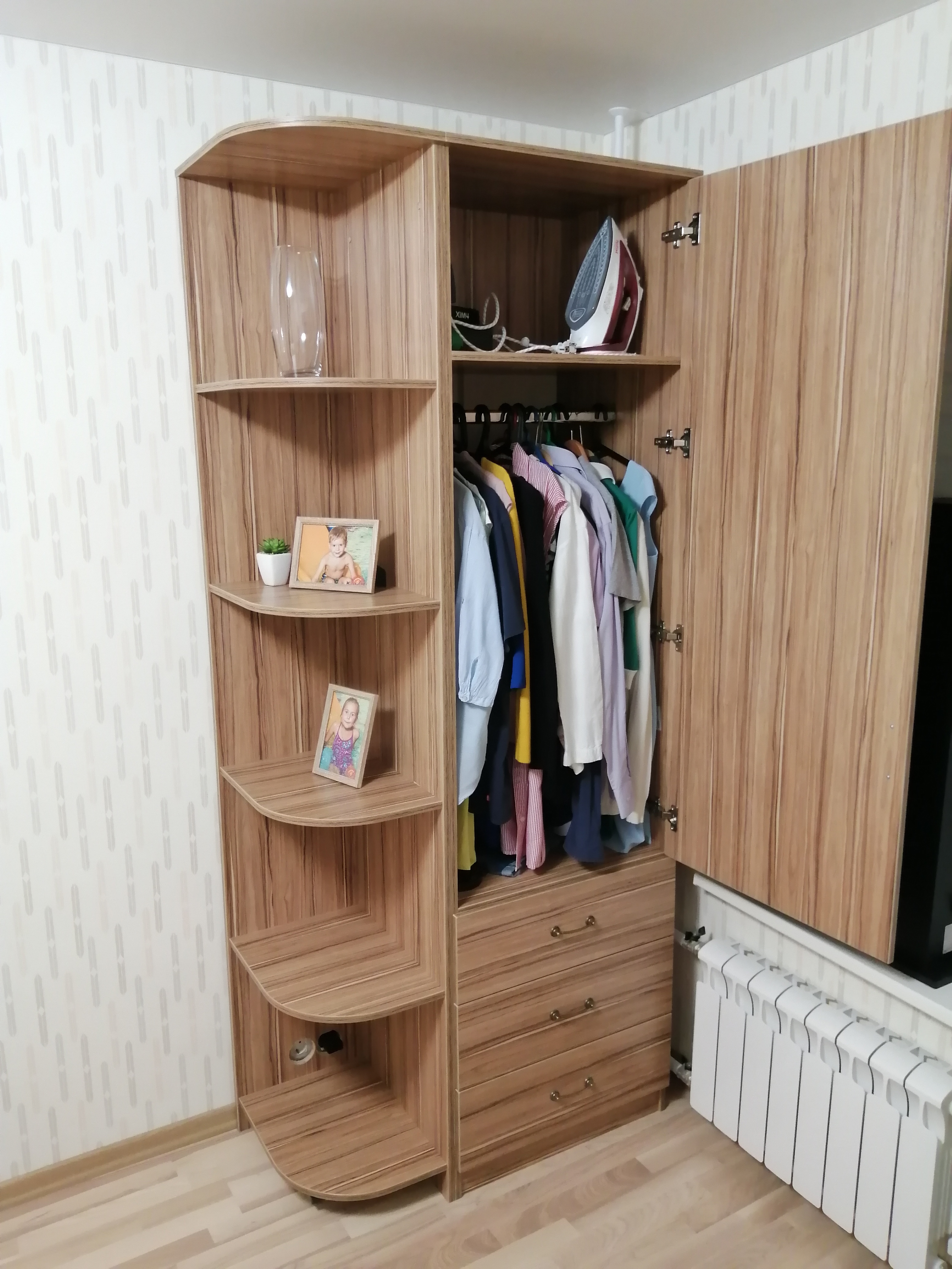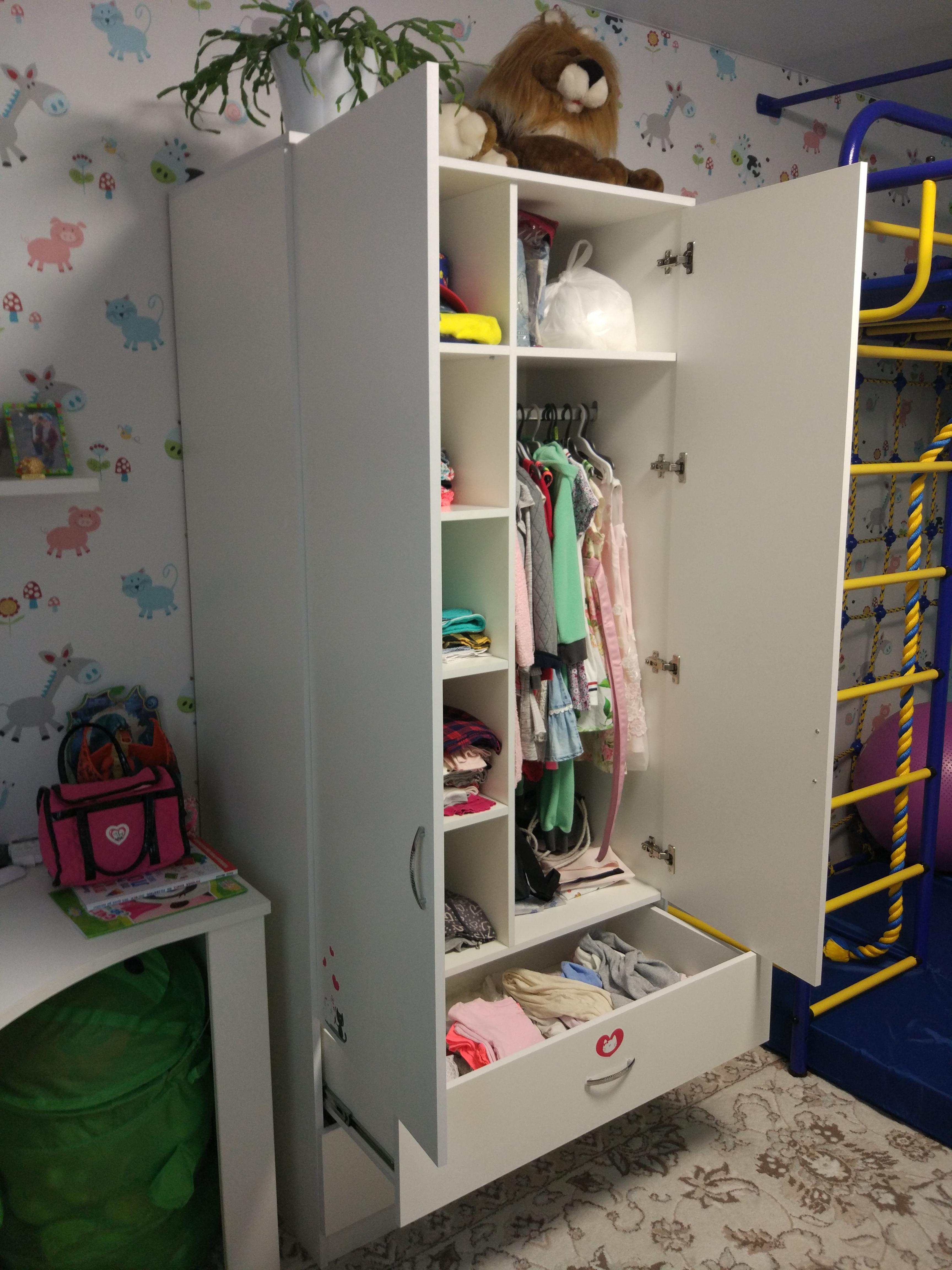 Доброго времени суток.Заказывали шкаф в детскую, мебель в этом магазине покупаем не в первый раз, шкаф покупали для комплекта к столу и стеллажу. БМШ хорош тем, что можно подобрать мебель любого размера, любого наполнения. Шкаф получился отличный, полностью оправдал ожидания. Качество достойное. С магазином приятно иметь дело, доставка вовремя, предварительно уточняют все детали.Два небольших замечания к магазину, которые в целом никак не портят картину: 1. Инструкция. Для тек, кто привык к инструкциям в какой-нибудь икее, инструкция по сборке в БМШ будет легким шоком:) У меня был опыт по сборке шкафов, я справился.2. Подарок. Нам подарили бесплатно полочку и это очень круто! НО, подарок в цвете Венге, а у нас вся мебель в комнате белая. Я просил оператор поменять цвет подарка, но, увы, мне сказали, что это невозможно. Подарок отличный, но, пожалуйста, сделайте небольшую вариативность по цветам, в пределах одной стоимости.