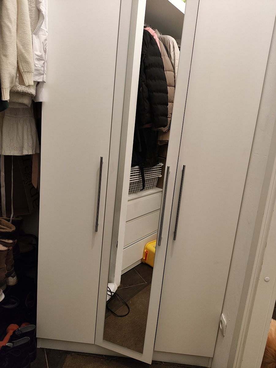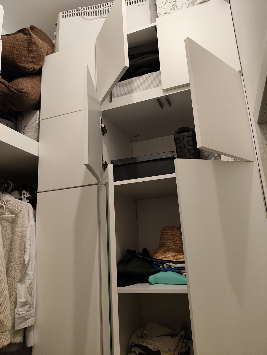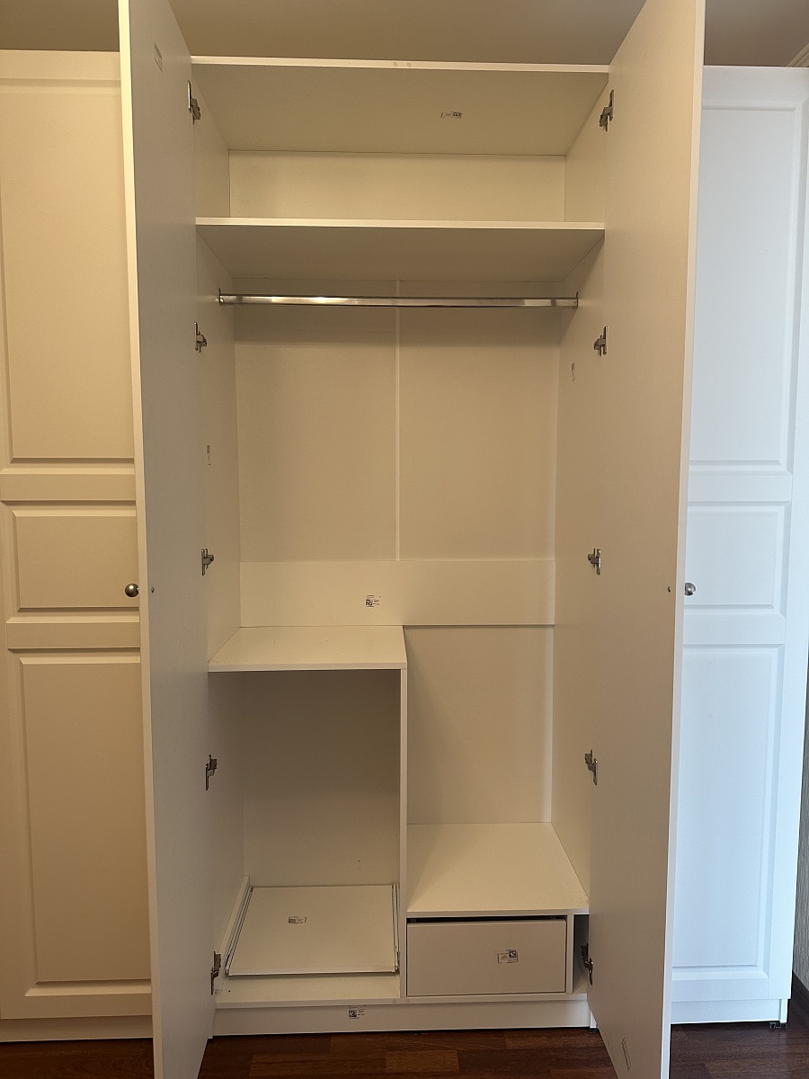Заказ 00000989902. Шкаф "Остин Нео 16 BMS" мы брали в спальню, чтобы навести порядок с одеждой. Первое, что понравилось – возможность выбрать цвет. Взяли серый – смотрится очень стильно и современно, именно такой нейтральный, но не скучный оттенок, который мы искали. Черные ручки стали отличным контрастным акцентом, завершили вид. Сам дизайн действительно минималистичный и аккуратный, не перегружает пространство.Функционально шкаф оказался удобным. Три двери – хороший размах. Отделение для вешалок вместило все платья и костюмы, полки отлично подошли для футболок, свитеров и постельного белья. Распашная антресоль вверху – спасение для чемоданов и сезонных вещей, которые не нужны каждый день. Зеркало на центральной дверце – просто бомба! Очень удобно видеть себя в полный рост перед выходом, не бегая по квартире. И правда создает ощущение, что комната чуть больше.Но сборка... Сборка была испытанием.Деталей много, и самое сложное – установить вертикальные стенки (боковины и центральную перегородку) в одиночку. Это просто нереально. Они большие, тяжелые, их нужно держать строго вертикально и одновременно прикручивать. Без помощника тут никак, мы еле справились вдвоем. Еще один момент – петли. Их несколько типов (для обычных дверей и для зеркальной), и в инструкции не сразу понятно, какие куда. Пришлось искать видео сборки в интернете, чтобы разобраться – без него наверняка перепутали бы. Будьте готовы к этому этапу.Если вам нужен компактный, но вместительный шкаф с современным дизайном и полным зеркалом, и вы готовы к сборке (обязательно с помощником и, возможно, с обучающим видео под рукой), то "Остин Нео" – отличный вариант. Смотрится дороже своей цены, и теперь вся одежда наконец-то прибрана!